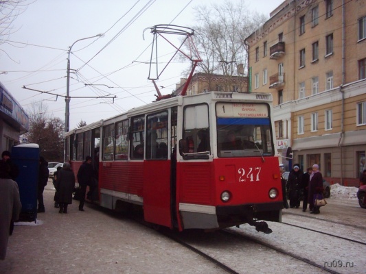 Трамвай КТМ-5 1982 г/в №247 на остановке "пл. Дзержинского". Фото 06.11.2007