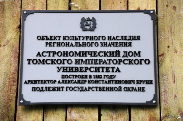 Томский государственный университет первый в Сибири, один из 4-х императорских. Первая постройка университетской усадьбы – Астрономический дом. Построен в 1882 году. Архитектор Александр Константинович Бруни. Объект культурного наследия.