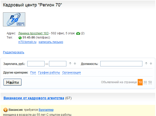 В поисках вариантов можно обратиться к конкретному агентству или работодателю, выбрав его из списка, чтобы посмотреть предлагаемые варианты и контактные данные.