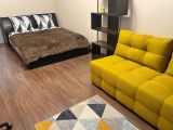 Квартира полностью укомплектована мебелью и новой бытовой техникой, есть удобная двуспальная кровать и новый диван, шкаф-купе и оборудованная гардеробная, рабочее место (компьютерный стол и кресло). В пользование предоставляется новая бытовая техника: кондиционер, телевизор с кабельными каналами, Смарт ТВ с возможностью бесплатного просмотра фильмов из интернета, полностью укомплектованная кухня (холодильник, плита, микроволновка, чайник, посуда), стиральная машина, гладильная доска, утюг, бойлер.