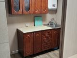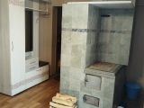 В маленьком доме остаётся все кроме холодильника. В большом доме остается кухонный гарнитур и стенка, остальное по договоренности. На полу линолеум, на потолке и в ванной комнате панель.