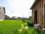 На территории расположен гараж 7*7 м2 с котельной (сделана под стандарты газовой, так как в перспективе планируется газификация участка), дровник, детская площадка и баня - гостевой дом 2 этажа с просторной верандой. Двор украшен цветами и кустарниками: девичий виноград, хмель, пионы, хосты, гортензии, люпины, флоксы, ежемалина, облепиха, красная смородина, чёрная смородина, жимолость, клубника, малина и крыжовник.