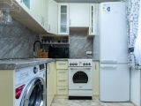 Состояние отличное: натяжные потолки, кафель, балкон застеклен пластиком. Остается частично мебель.