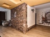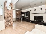 Акцентные элементы интерьера: декоративная кирпичная кладка, текстурные обои и дизайнерское освещение.