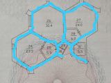 Планировка: 3 больших комнаты нестандартной формы (шестигранники) + подсобные помещения, кладовые, санузел