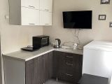 В квартире выполнен евроремонт, мебель и техника остаются. Вместительный шкаф купе, гарнитур, барная стойка, диван. Установлен бойлер. Можно заезжать и жить без дополнительных вложений.