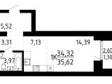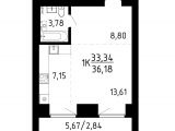 Общая площадь  36.36 кв.м